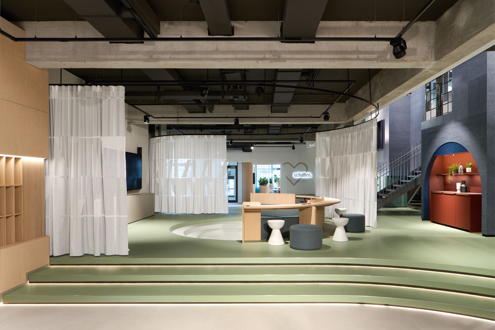 Das neue Logo wurde passend zur großen Neugestaltung des Schüller-Ausstellungs-Center |s|a|c. präsentiert. Diese Neugestaltung unterstreicht erneut den Antrieb von Schüller, einen Schritt voraus zu sein. Ziel des Umbaus war es, den Raum der Begegnung, Kommunikation, Präsentation und Schulung zu einem inspirativen, sensorischen Erlebnis werden zu lassen. Sogar der Pavillon aus der Kooperation „The Fireplace“ mit Francis Kéré wurde zu diesem Anlass im Garten des |s|a|c. wieder aufgebaut. Das visionäre Ausstellungskonzept zeigt den Besuchenden nicht nur das breite Produkt-, Farben- und Materialspektrum der drei Produktmarken aus dem Hause Schüller, sondern auch Qualitätsaspekte und Services für die Handelspartner.